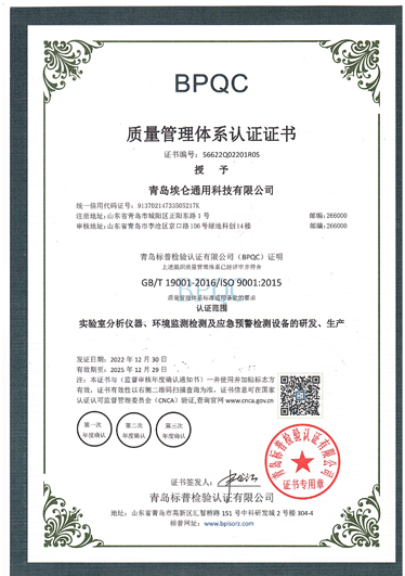 青島埃侖通用科技有限公司,是一家通過ISO 9001質(zhì)量管理體系認證及ISO 24001環(huán)境管理體系認證、ISO 45001職業(yè)健康管理體系認證的高科技技術(shù)企業(yè)。集研發(fā)、制造、銷售和售后服務于一體的產(chǎn)品多元化綜合性企業(yè),參與了《離子色譜儀國家標準》的起草與制定,是專業(yè)生產(chǎn)離子色譜儀的知名企業(yè)。